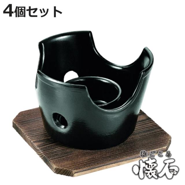 コンロ 4個セット 木台付き 和ごころ懐石 ( 丸型コンロ 円形コンロ 木台付 小型コンロ 鍋用コンロ 卓上用コンロ 台付き 1人鍋用 一人鍋用 懐石料理 会席料理 火皿 )