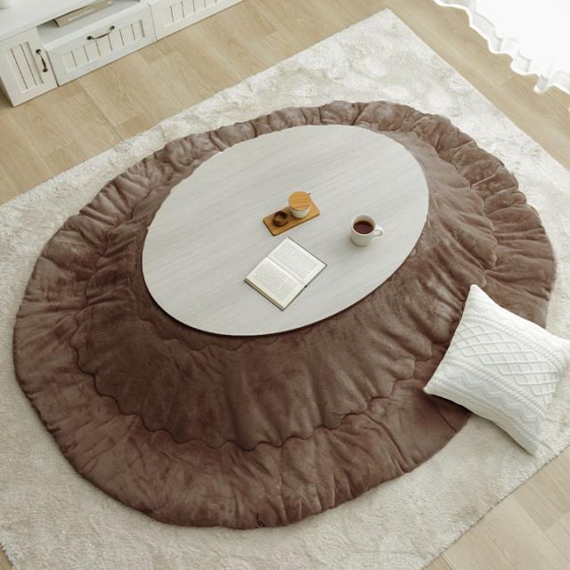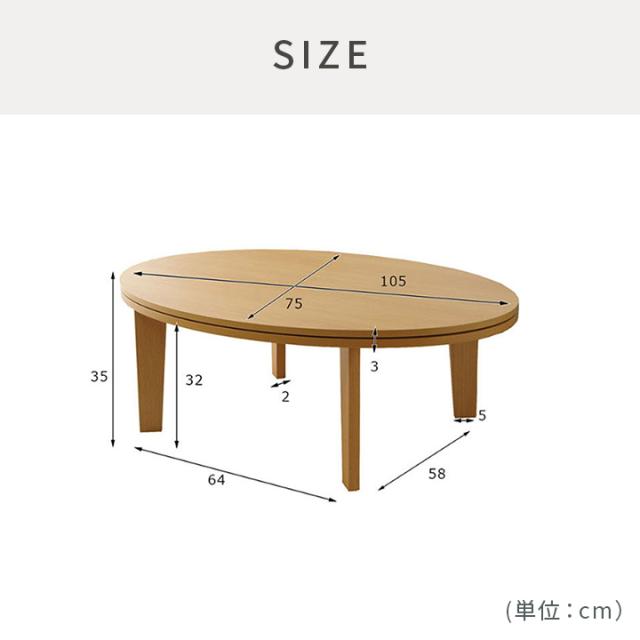 | 掛布団:約185×225cm楕円形 (キルティング加工許容範囲 +5%−3%) こたつ台:75×105cm楕円形 |