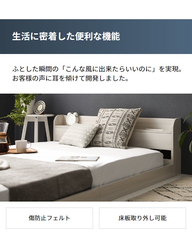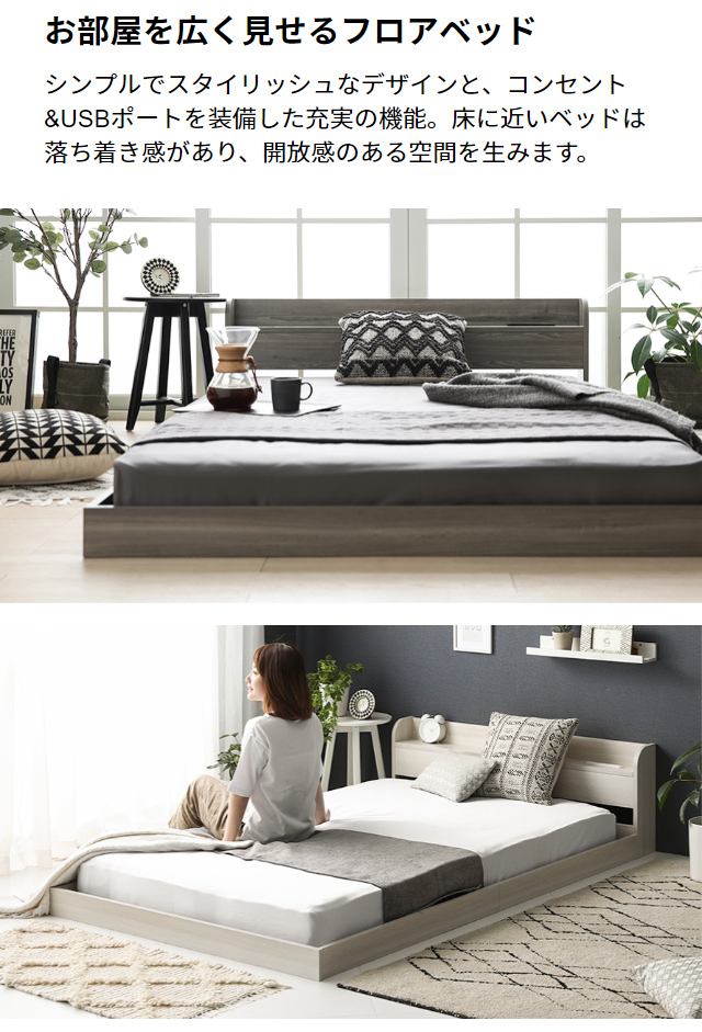 ローベッド ベッド ロータイプ ダブル フロアベッド ベット フレーム ベッドフレーム 白 ホワイト グレー ブラック ブラウン ナチュラル 新生活