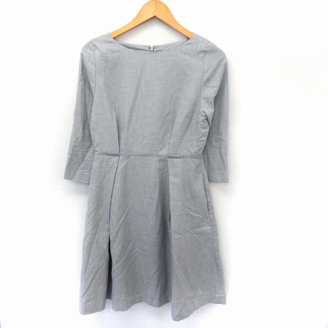 【中古】バナーバレット Banner Barrett ワンピース 膝丈 フレア 七分袖 バックジップ シンプル 38 グレー /ST9