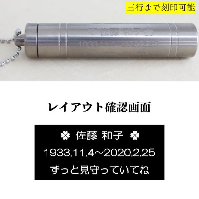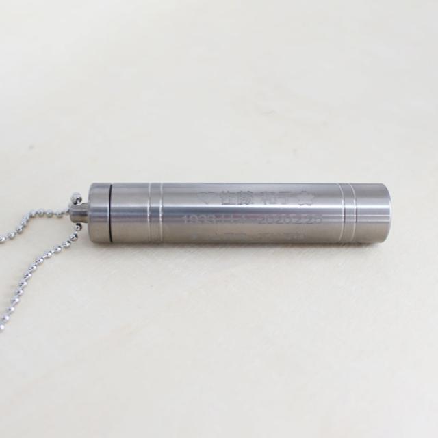 故人様のご遺骨、遺髪などを納める遺骨カプセル、遺骨ペンダントです。 お名前やメッセージ、イラストなどのオーダー刻印が可能。