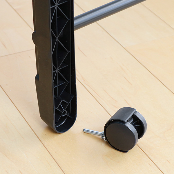 お掃除のときなど、ちょっと動かしたいときに便利なキャスター付きです。キャスターは外してもお使いいただけます。