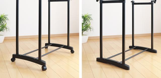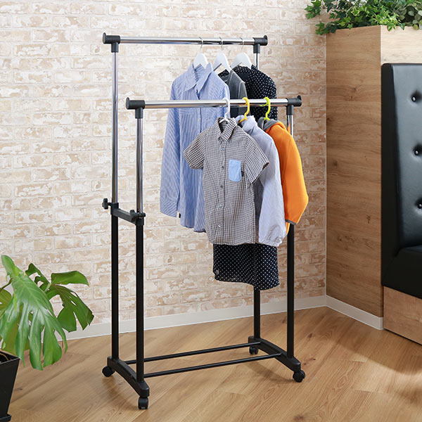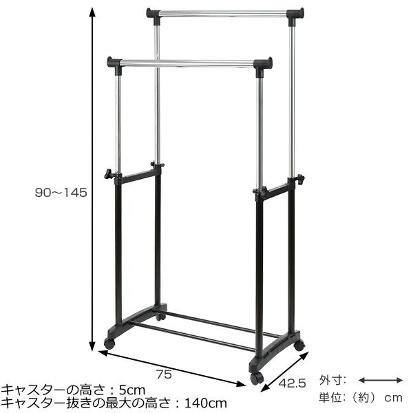パイプハンガー ダブル 幅75×奥行42.5×高さ90〜145cm 伸縮極太 キャスター付き ( 2段 ハンガーラック 伸縮 コートハンガー クローゼット 安定 洋服掛け コート ワンピース シンプル スリム 玄関 組み立て簡単 小物掛け )