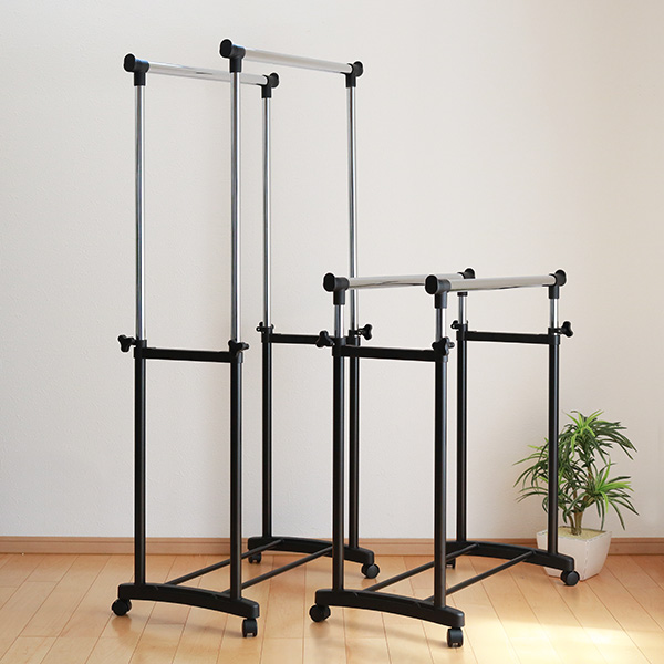 高さが変えられる極太パイプ、ダブルハンガー