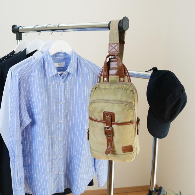 両サイドも余すことなく、バッグや帽子など小物掛けに活用できます。突起があるためズレ落ちを防ぎます。