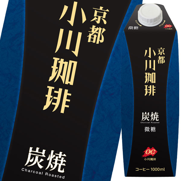 送料無料 スマプレ 京都 小川珈琲店 炭焼珈琲 微糖1L 紙パック ×3ケース(全18本)