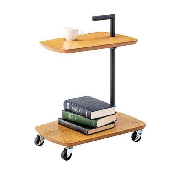 ●シンプルで使いやすいデザインのワゴンサイドテーブルは、移動に便利なキャスターが付いています。