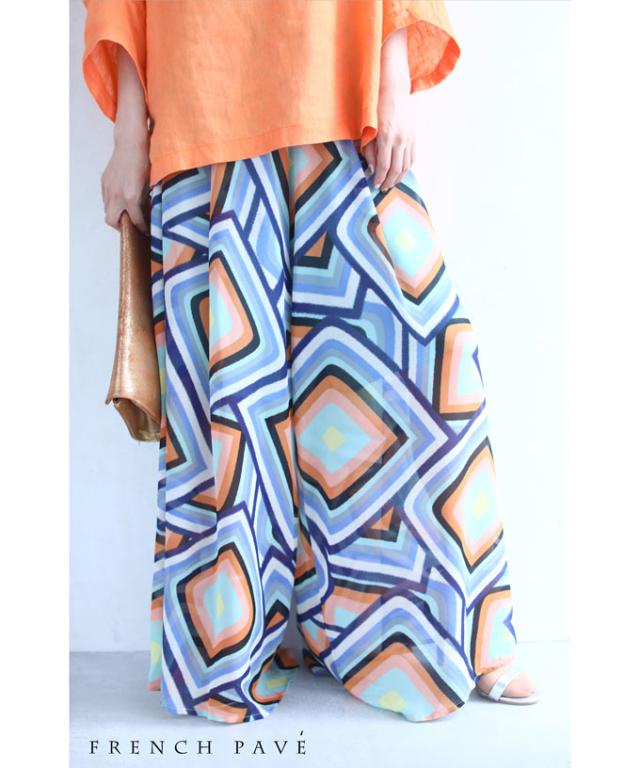 【閉店SALE】 cawaii (M)w69903「FRENCH PAVE」個性的な柄を愉しむエアリーワイドパンツ ワイドパンツ パンツ レディース cawaii 30代 40代 50代 母の日