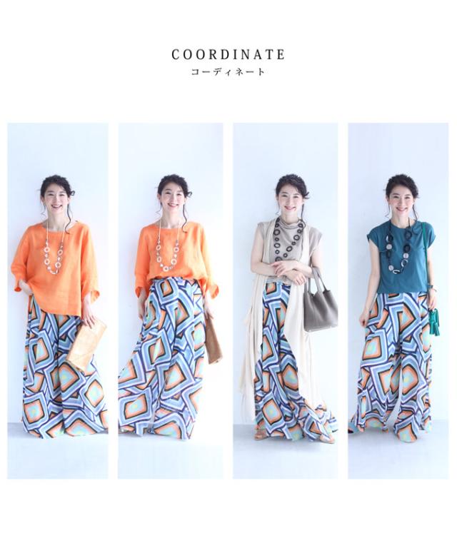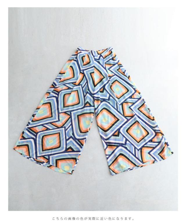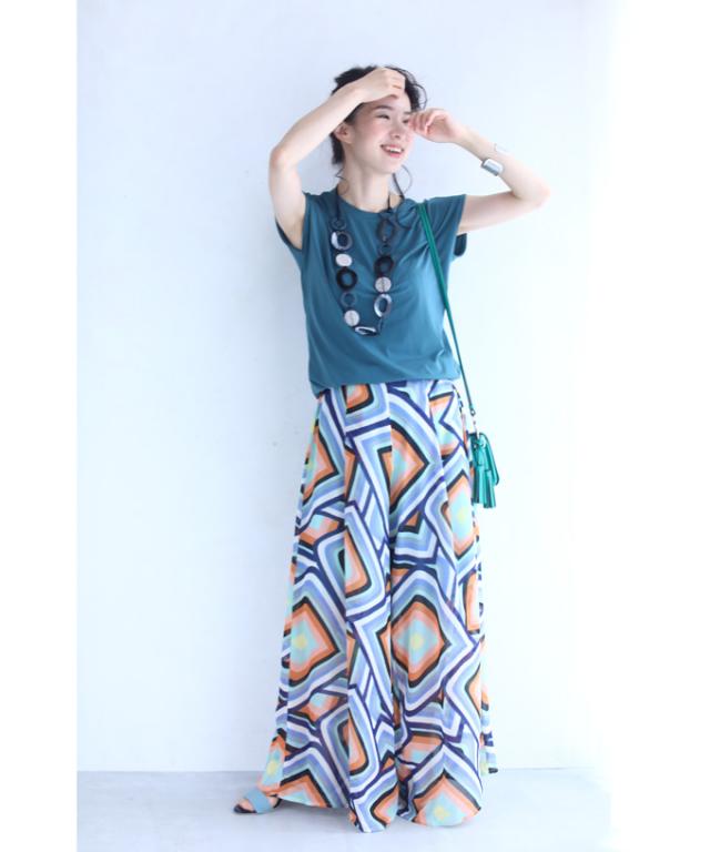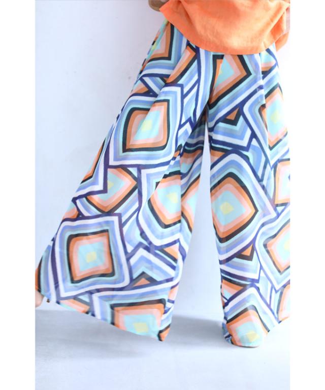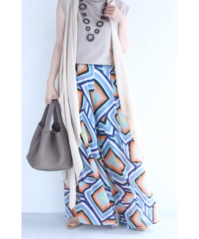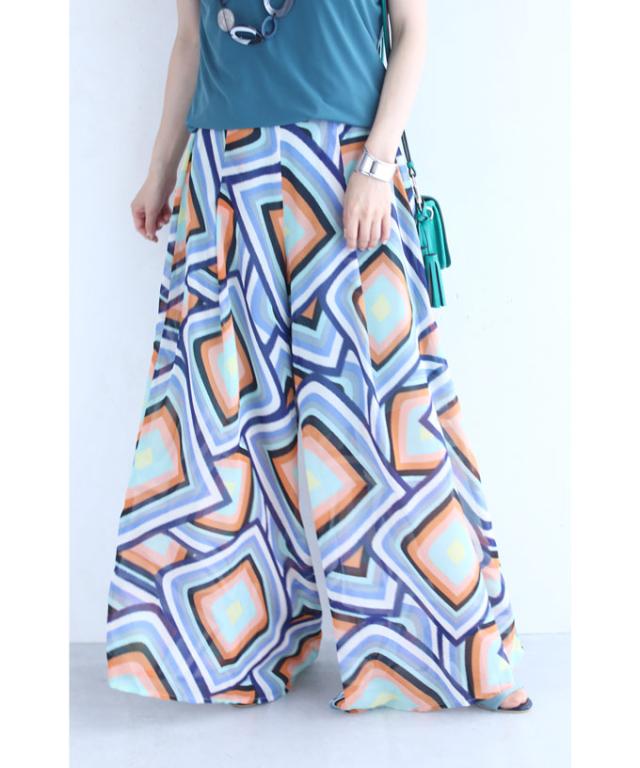 「個性的な柄を愉しむエアリーワイドパンツ」