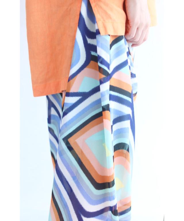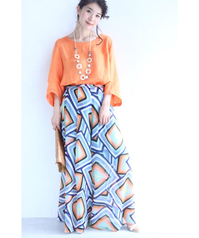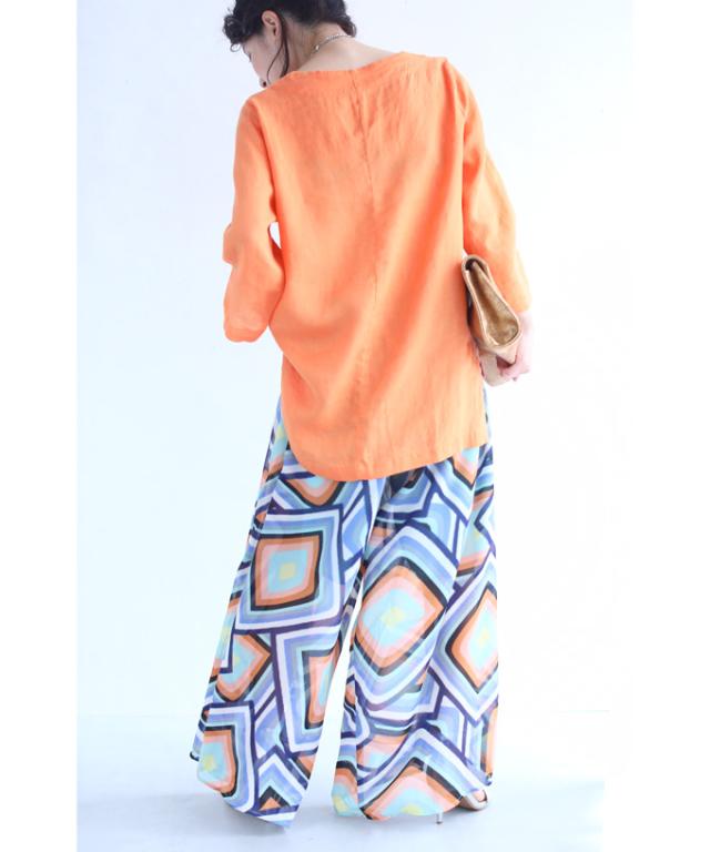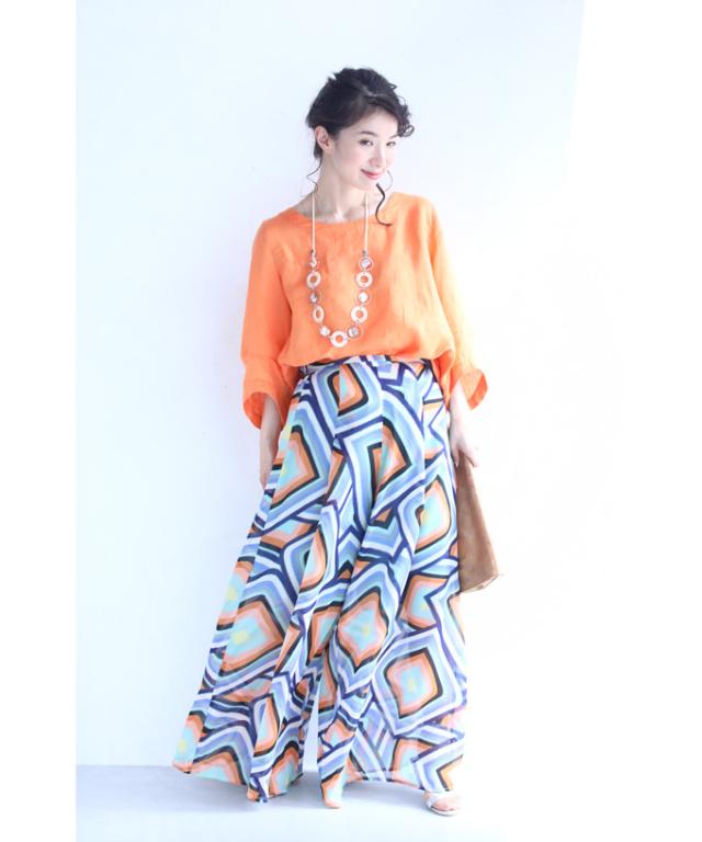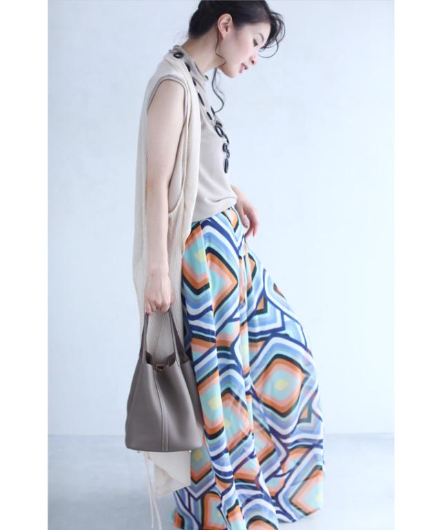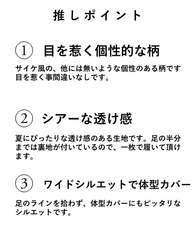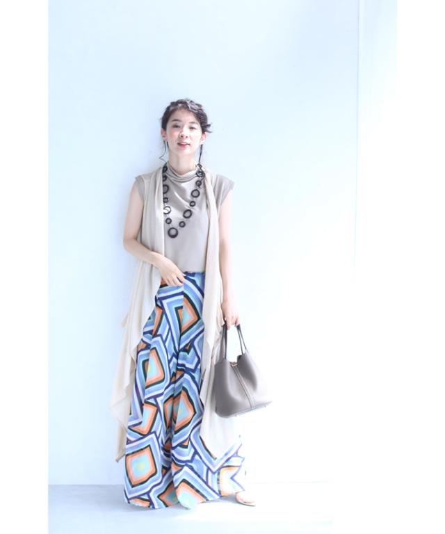 「個性的な柄を愉しむエアリーワイドパンツ」