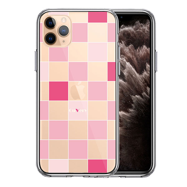 iPhone11 Pro ケース ハードケース ハイブリッド クリア CuVery ブロック チェック ピンク カバー アイフォン スマホケース