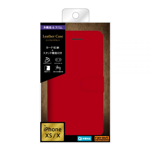 iPhoneXS iPhoneX ケース 手帳型 シンプル マグネット レッド
