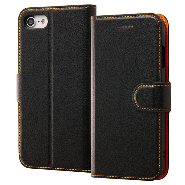 iPhone SE 2020 SE2 第2世代 iPhone8 iPhone7 ケース 手帳型 シンプル マグネット ブラック オレンジ アイフォン カバー スマホケース