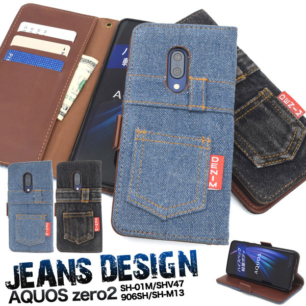 AQUOS zero2 SH-01M SHV47 906SH SH-M13 ケース 手帳型 ジーンズ カバー アクオス ゼロツー スマホケース