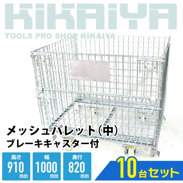 メッシュパレット 中 ブレーキキャスター付き 幅1000×奥行820×高さ910mm 業務用 メッシュボックス 網パレット パレティーナ 10個セット KIKAIYA