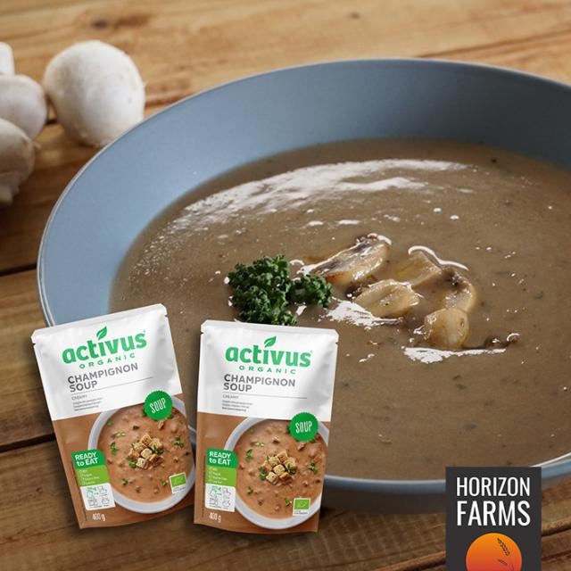 100% オーガニック マッシュルーム、有機野菜とスパイスで作られた、1パック400g入りx2パック(合計800g)のクリーミーなマッシュルームスープ。ご家族全員でお召し上がりいただくのにぴったりです。すでに加熱調理済ですので、温めて器に注ぐだけで美味しいスープができあがります。スープとしてはもちろん、HORIZON FARMSが取り扱う牛肉の味を引き立てるマッシュルーム・グレービーソースとして、ステーキに添えてお召し上がりいただくのもおすすめです。