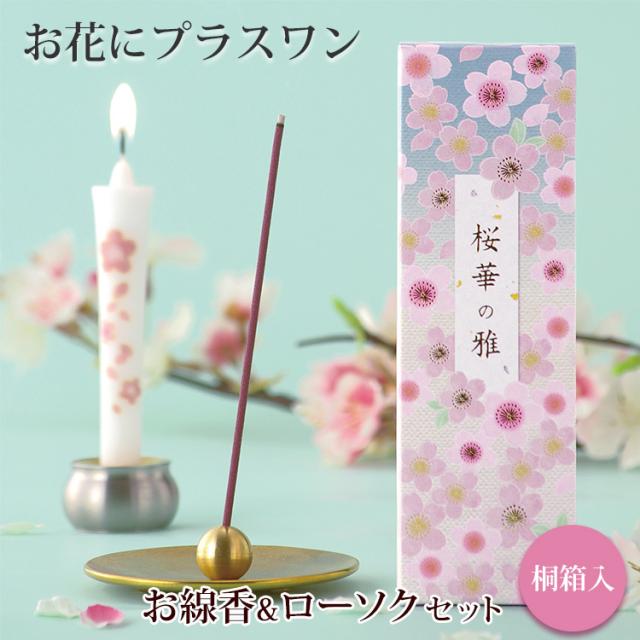 【お花にプラスワン】 桜華の雅【桐箱入り】※ ローソク と 線香 セット のみの購入はできません※