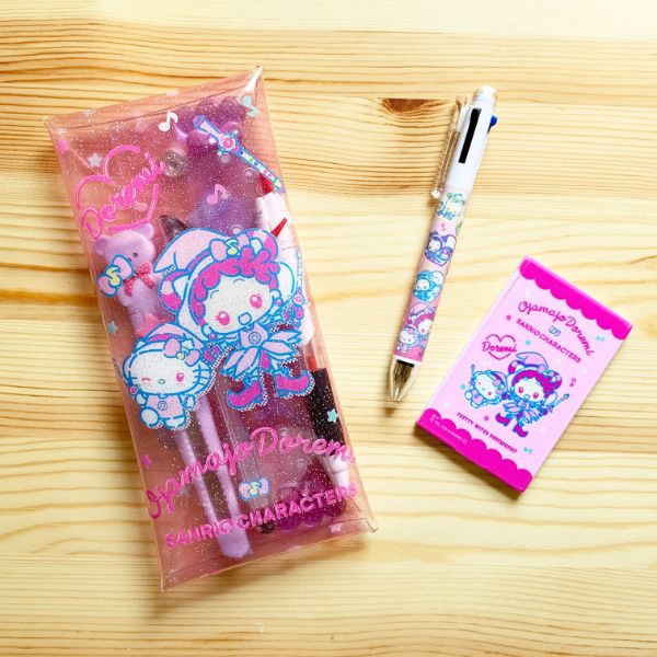 おジャ魔女とサンリオのコラボ商品!生地はキラキラのラメ入り。文房具はもちろん、いろんなものを入れて持ち運べるよ♪