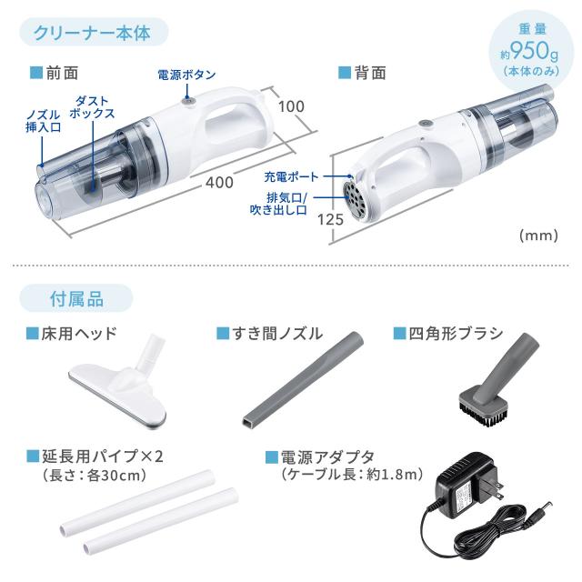 スティッククリーナー ブロワー機能付き コードレス 充電式[200-CD062]