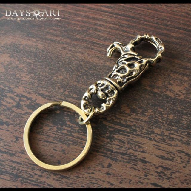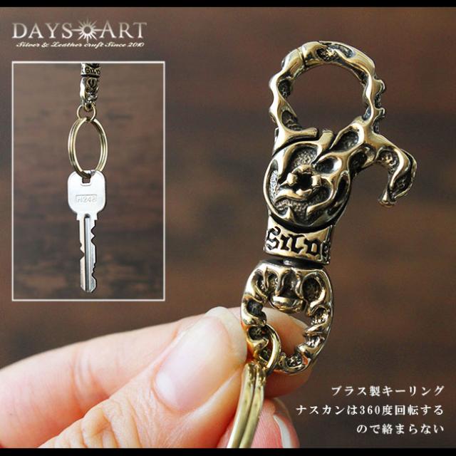 キーホルダー メンズ レディース ユニセックス ブラス 真鍮 トライバル ファイヤーパターン デザインナスカン ゴールド 【ギフト】 kcb013