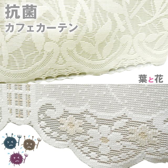 抗菌 カフェカーテン 葉 花 幅100×45 70 90cm