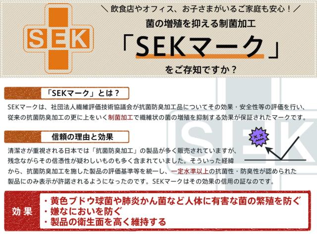 社団法人繊維評価技術協議会が効果を認定したSEKマーク付き。