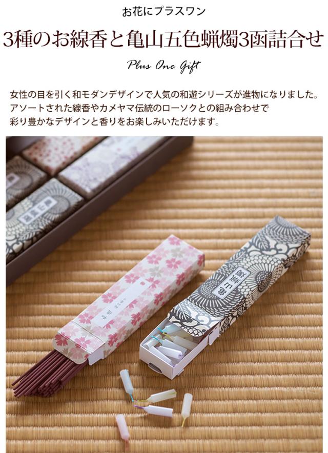【お花にプラスワン】 3種のお線香と亀山五色蝋燭3函詰合せ※ローソクと線香セットのみの購入はできません※
