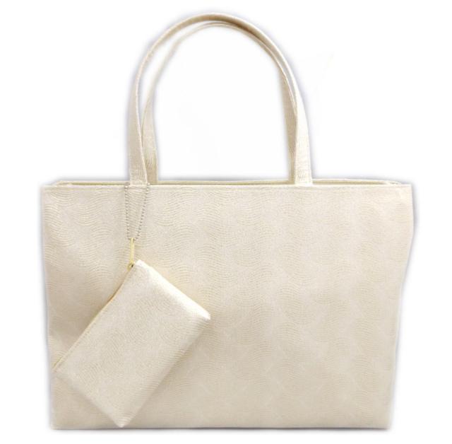バッグ 手提げ ポーチ セット 織地 金糸入り オフホワイト地波 横型 日本製 着物 お稽古事 女性用