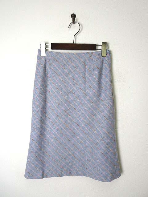 【中古】ヒロタ スカート ウール チェック柄 ラメ 膝丈 S サックス レディース