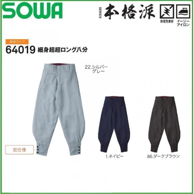 桑和 64019 細身超超ロング八分 S〜4L 制電性素材 細身タイプ ポリエステル100% SOWA
