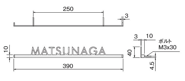 表札 ステンレス 切文字タイプ KS-NK47S シリーズ 【 カラー 】ホワイト 【 仕上 】 アクリル焼付塗装 【 材質 】 ステンレス (SUS304) 【 付属品 】 ボルト M3x30 2本 【 サイズ 】H×W×t 40×390×13 【 品番 】KS-NK47S-W 【 備考 】 ※画像はイメージです。 ※パッケージ、仕様、品番などの変更が予告なく変更される場合が御座います。 |