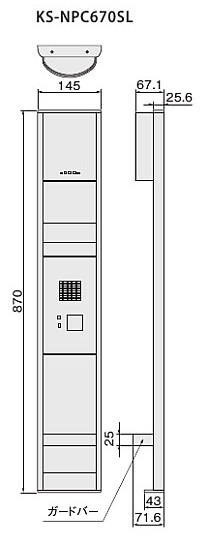 【サイズ】H×W×D 870×145×43〔71.6〕〔 〕内はガードバー・照明を含む寸法