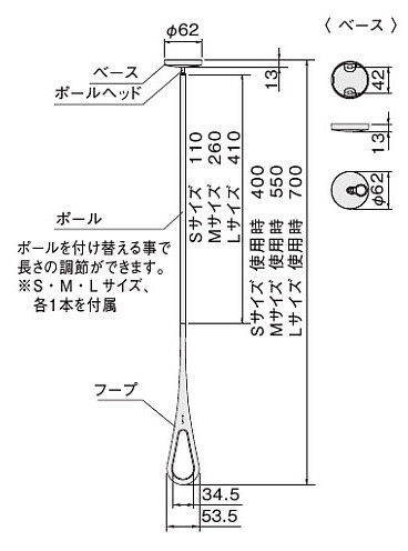 ポール:ポールヘッド: SUS303 ポール: アルミニウム