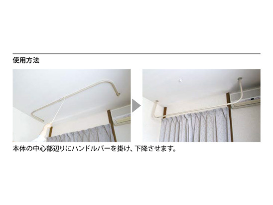 使用方法:本体の中心部辺りにハンドルバーを掛け、下降させます。