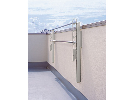 屋外物干 上下可動タイプ KS-DA706ASPN シリーズ 【 特長 】 【 干せる目安重量〔1セット〕 】30kg 【 カラー 】ホワイト 【 仕上 】 ポール・ブラケット:アルマイト 処理 クリア塗装 アーム:アクリル 焼付塗装 【 材質 】 ポール・ブラケット:アルミニウム アーム:アルミダイカスト (ADC12) 【 サイズ 】壁面 直付用 支柱 貫通用 L606mm 【 重量 】1.7kg 【 品番 】KS-DA706ASPN-W 【 備考 】 2本入 注)ブラケットを取り付ける際は手摺乗り越え危険防止のため H=1004以上の位置にくるように取り付けてください。 ・4段階(150mmずつ)の上下移動 ができます。ポール背面のねじを移動することで、 上下移動を3段・2段・1段仕様に変更可能です。 ・アームをポールへ垂直に収納できます。 ・急落防止機構付 屋外物干の耐荷重に十分に耐えられる壁面及び支柱に取り付けてください。また、避難経路を確保できる場所に取り付けてください。足掛かり位置から足のかかる部分までの高さが650mm以上に なるように設置してください。 【 取付パーツと使用数一覧 】別途必要なパーツです。 取付場所:取付パーツ( 1セット):使用数(セット) 壁面直付:F/T :1 支柱取付:G/H/J/K:1 バルコニー用:M/N:1 リフォーム用:R1:1 RC直付 :L:1 丸支柱用 :S:1 注)RCに取り付けの際は、アンカーM8、ワッシャー、ナット (各4個)をご使用ください。 ※画像はイメージです。 ※パッケージ、仕様、品番などの変更が予告なく変更される場合が御座います。 |