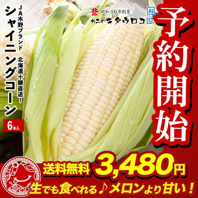 【予約】 まるでフルーツ?畑のスイーツ♪「シャイニングコーン」6本入 平均糖度17度前後 送料無料 お取り寄せ 指定日不可 同梱不可 北海道十勝産 JA木野ブランド