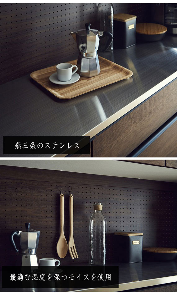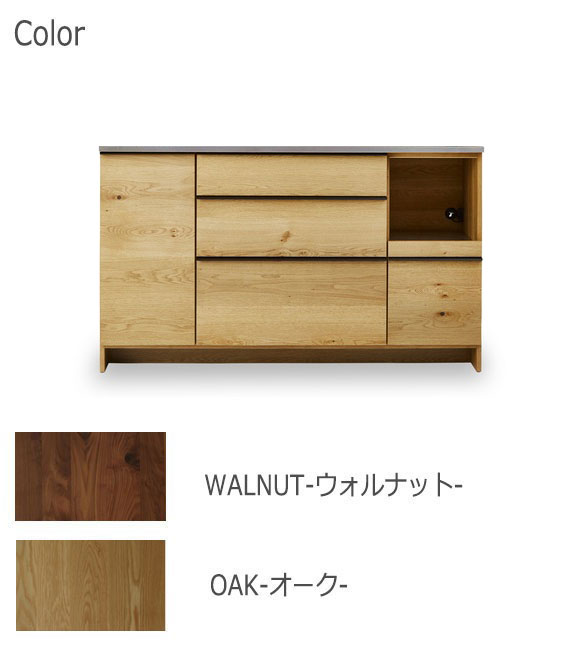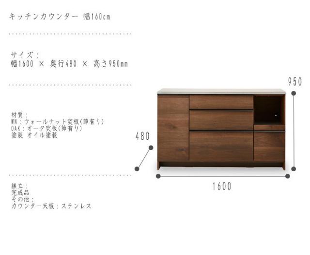 | 材質 | WN:ウォールナット突板(節有り) OAK:オーク突板(節有り) 塗装 オイル塗装 カウンター天板:ステンレス |