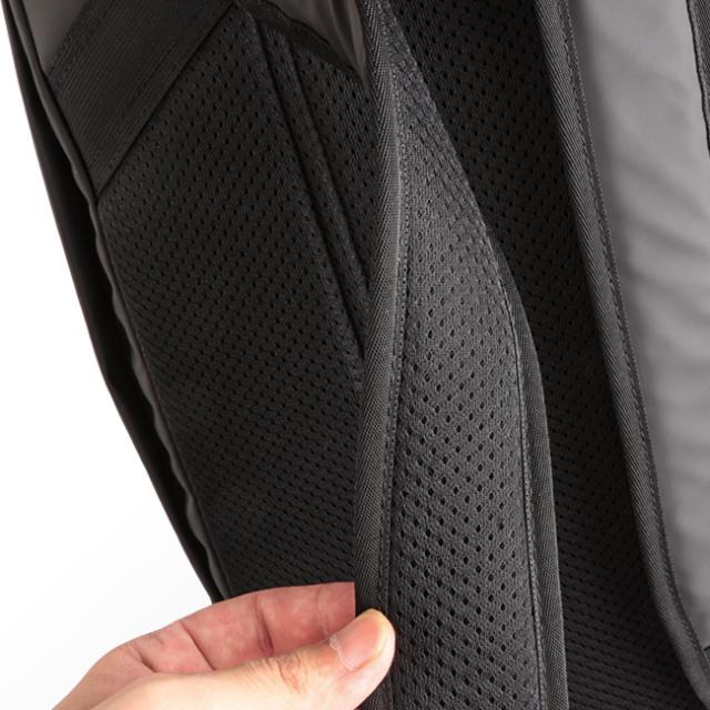 背面パネルとショルダーベルトはクッション付きでムレや疲労感を和らげます。