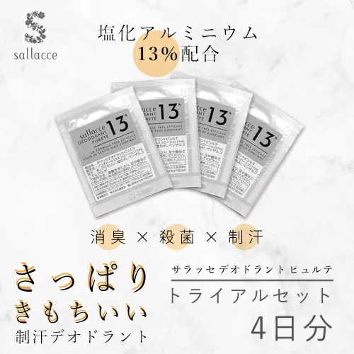 (定形郵便)オドレミンと同処方・同濃度【お試し】サラッセ デオドラント ピュルテ トライアルセット(パウチ4包・4日分)[わきが 抑える 男女兼用 多汗 足の臭 【医薬部外品】