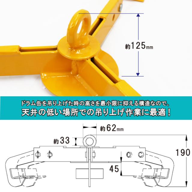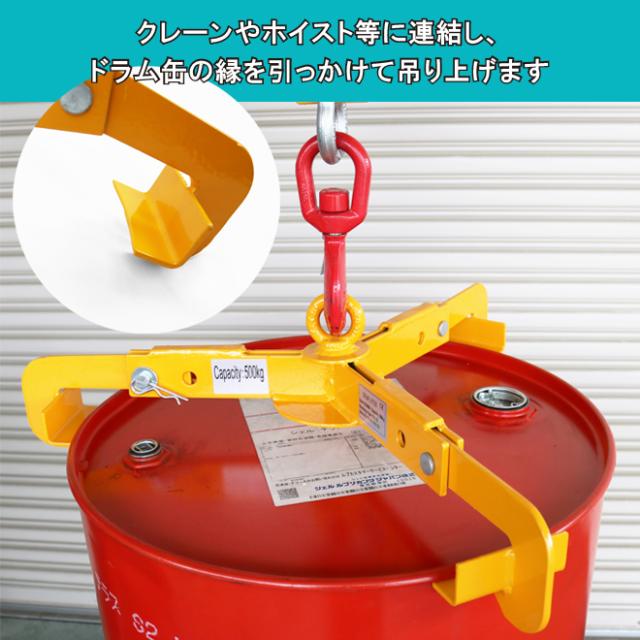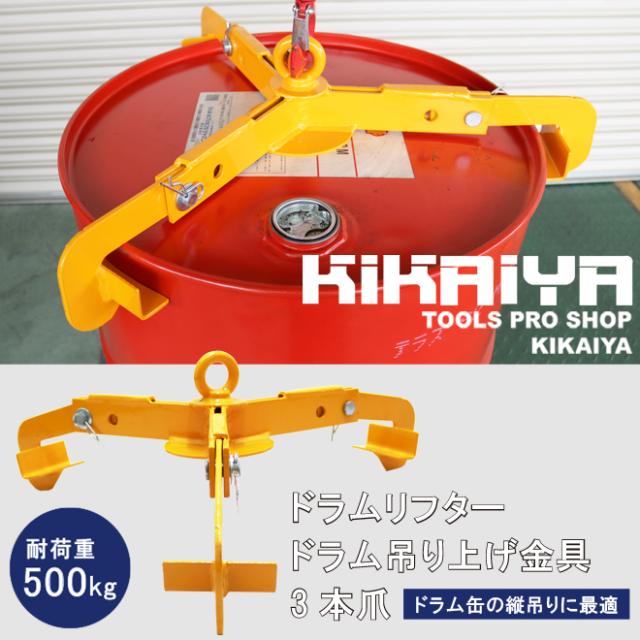 ドラムリフター 3本爪 ドラム吊り上げ金具 ドラム缶吊り具 荷重500kg ドラム缶縦吊り具 ドラム吊り具 ドラム缶縦吊りクランプ KIKAIYA