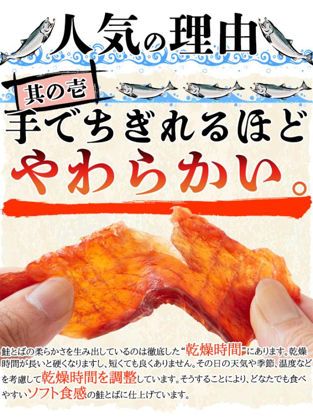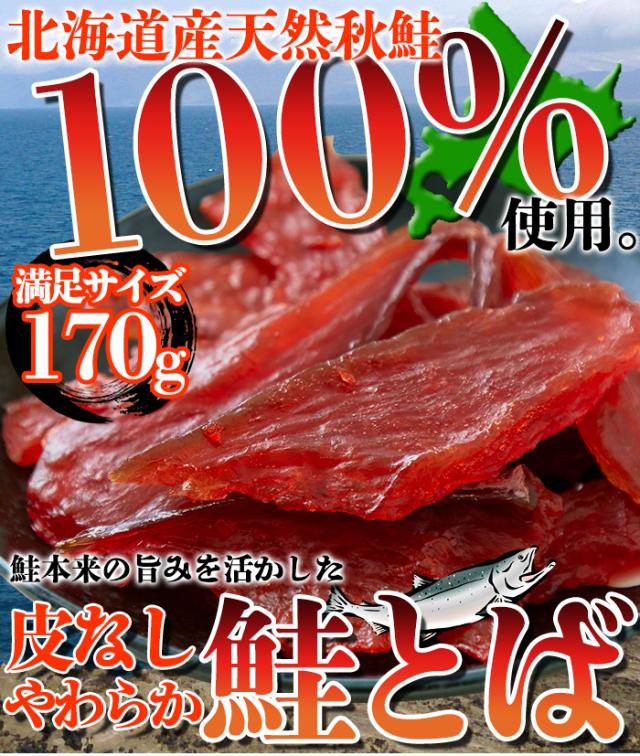 北海道産の天然秋鮭を100%使用!!【簡易包装】皮なしやわらか鮭とば170g/メール便 pre