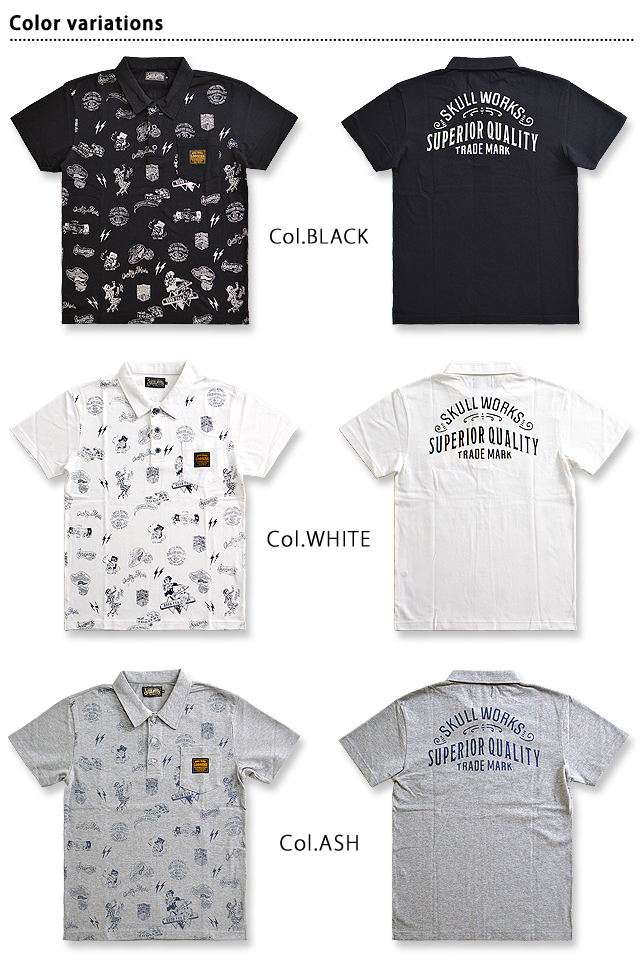 総柄半袖ポロシャツ◆スカルワークス/111565送料無料アメカジバイカーSKULL WORKS