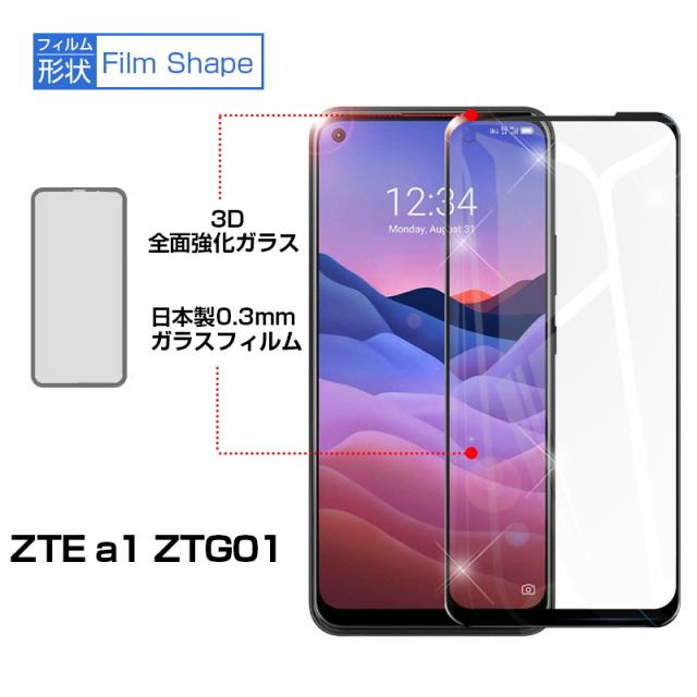 【2枚セット】ZTE a1 ZTG01 ガラスフィルム 3D 液晶保護ガラスシート 強化ガラス保護フィルム 全面保護 画面保護 スクリーン保護フィルム キズ防止