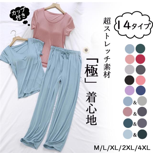 部屋着 レディース ルームウェア 女性 パジャマ レディース ルームウェア 婦人ナイトウェア 大きいサイズ 上下セット 寝間着 夏 半袖 2点セット