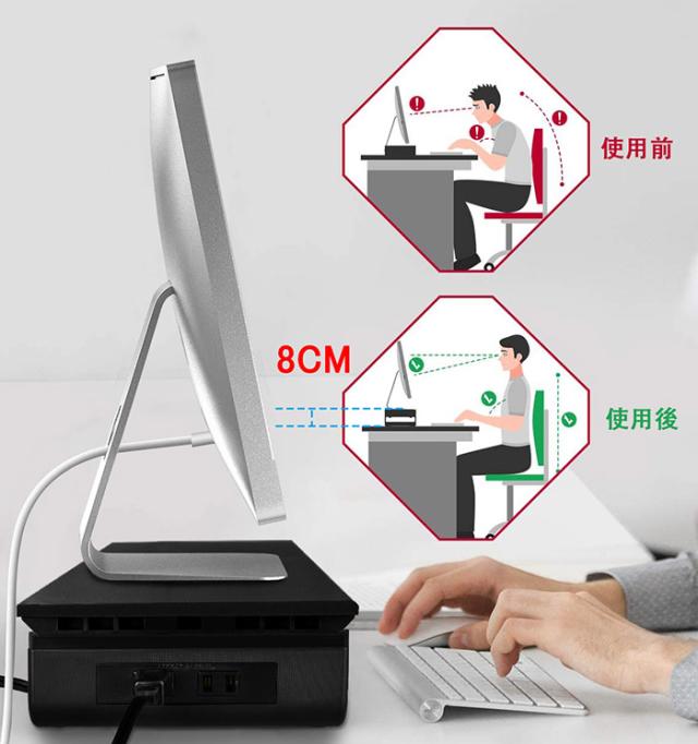 ・モニター台を使うことによって、視線が自然に上がり、背筋が伸びるようになり、猫背になるのを防ぐことができます。良い姿勢を保つことで、楽に作業することができ、首こりや肩こりになりにくい!