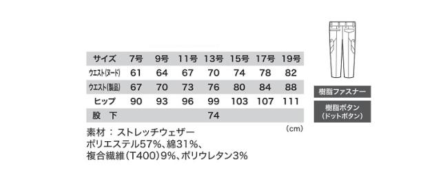 作業服 作業着 XEBEC ジーベック レディスラットズボン 1739 春夏