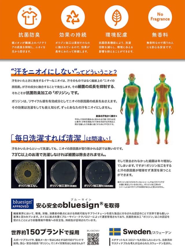 当店大人気のシンプル無地ビッグTシャツに、機能性を持たせた新作が登場!!ポリジン社(スウェーデン)が開発した銀イオン(Ag+)による抗菌防臭加工「ポリジン」。