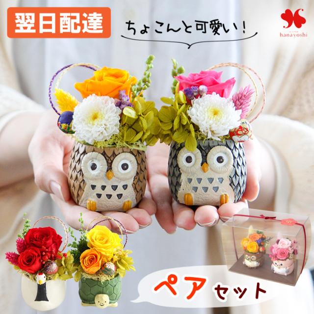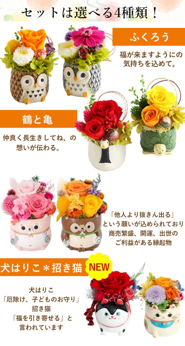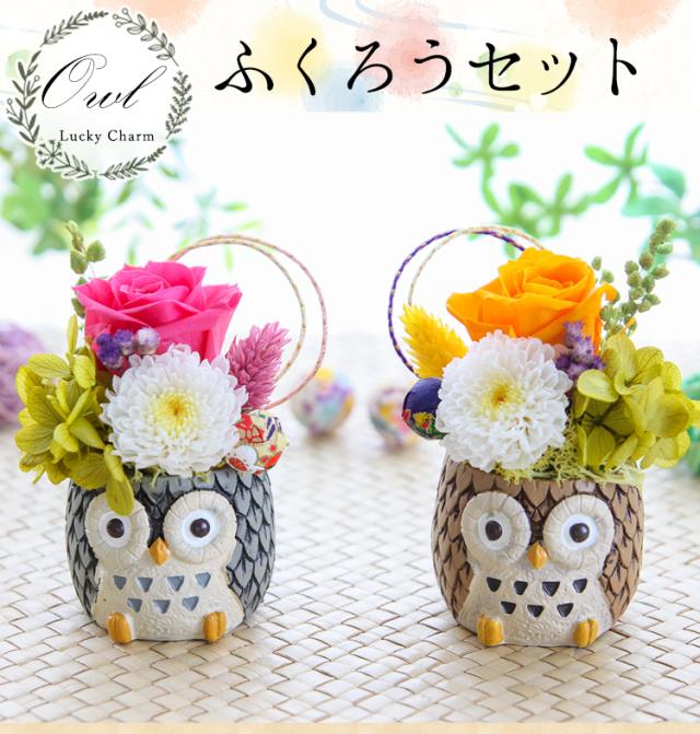 プリザーブドフラワー 和風 キャラクターペアセット 長寿祝い お祝い お花 銀婚式 ギフト 還暦祝い 傘寿祝い 米寿祝い 歓迎会 定年 誕生日 プレゼント 女性 母 祖母 祖父 孫 おばあちゃん ふくろう 鶴 亀 縁起物 ブリザードフラワーお祝い お歳暮 冬ギフト クリスマス