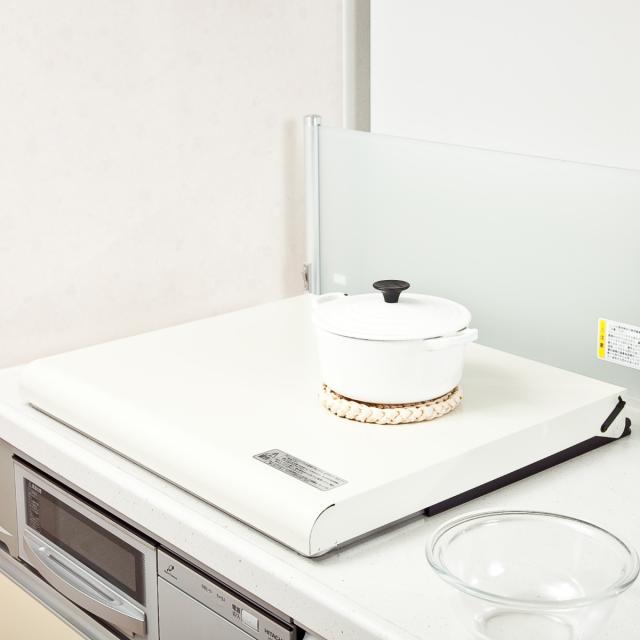 使わない時はフタをして作業スペースとしてご使用いただけるので、広々とキッチンスペースを有効に活用でき、見た目にもスッキリ。不意の来客時もサッとフタが出来るので安心です。猫のコンロの飛び乗り対策としてもおすすめです。