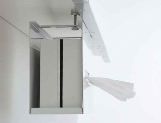 | 取り付け可能な場所 | ■吊り戸棚の厚さ 約1.3cm〜3cm以内の棚板 ■洗面台と吊り戸棚との間に必要な高さ:約15.7cm+収納する容器のサイズ以上 |